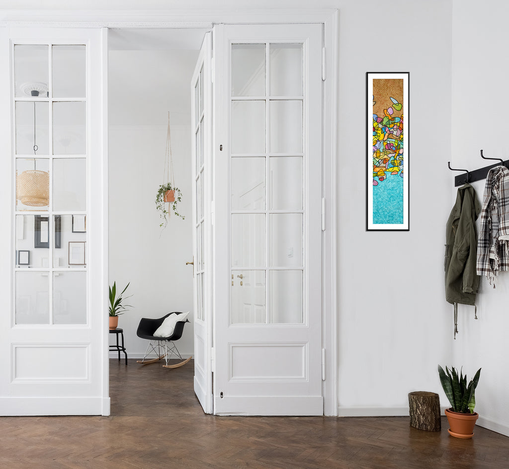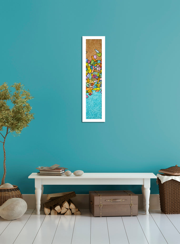 Translucent acrylic on silk mounted over silkscreened visual textures.
