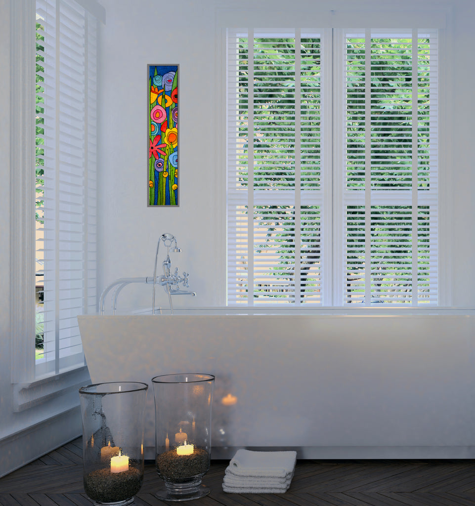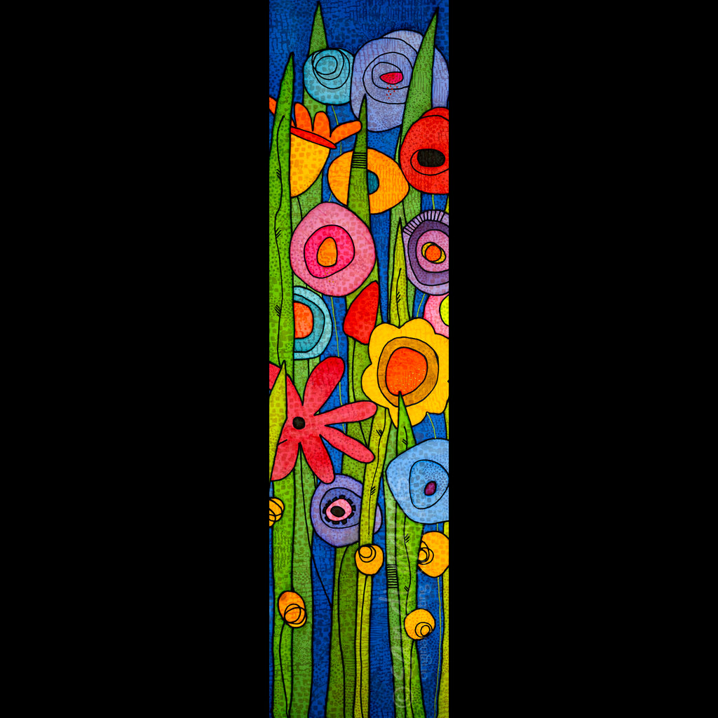 Translucent acrylic on silk mounted over silkscreened visual textures.