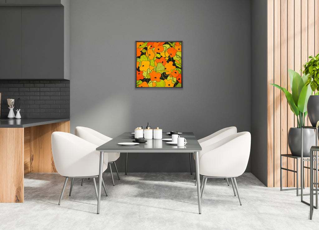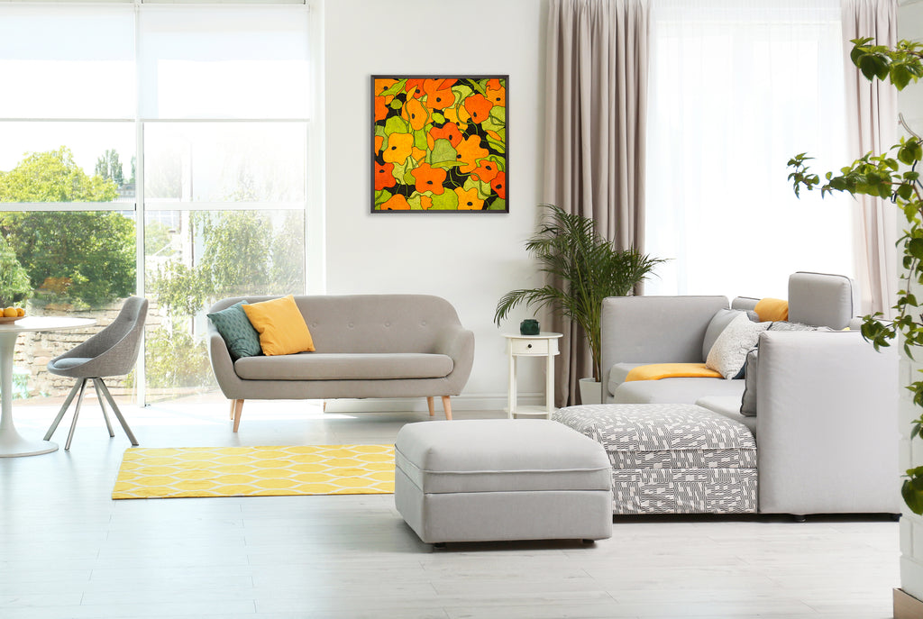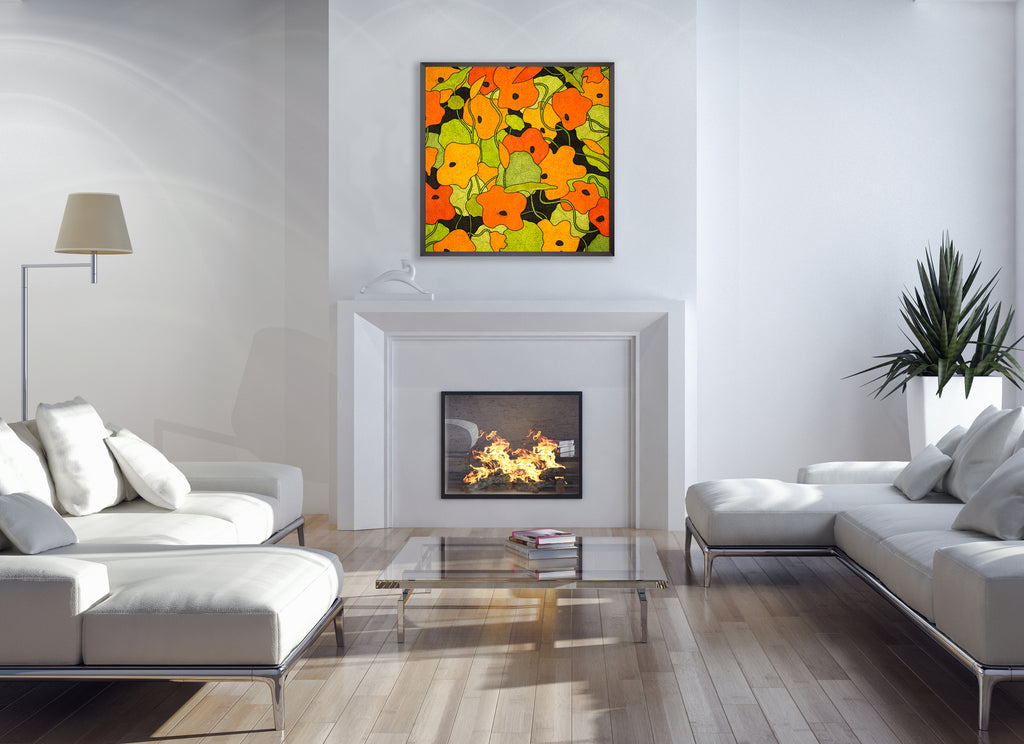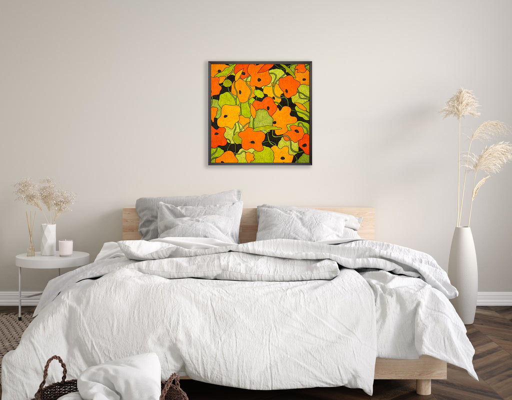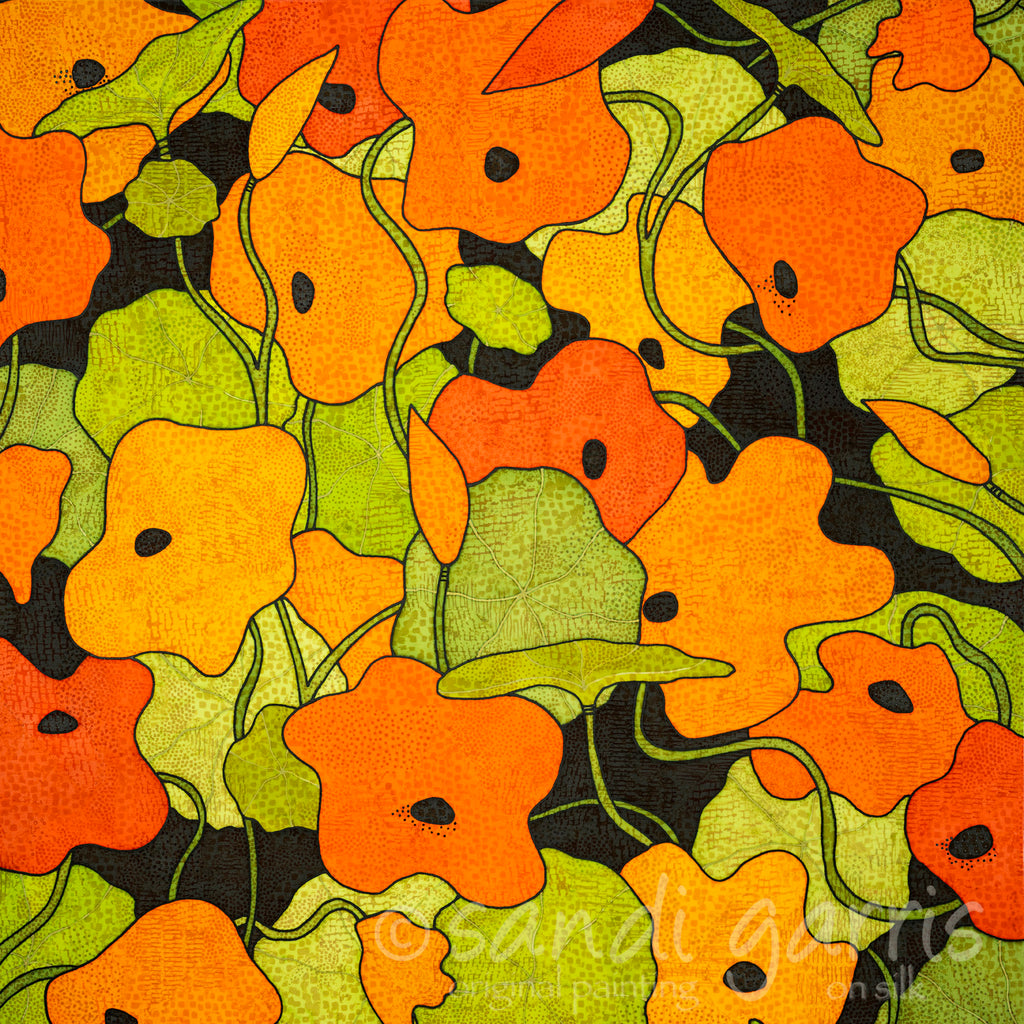 • Translucent acrylic on silk mounted over silkscreened visual textures.