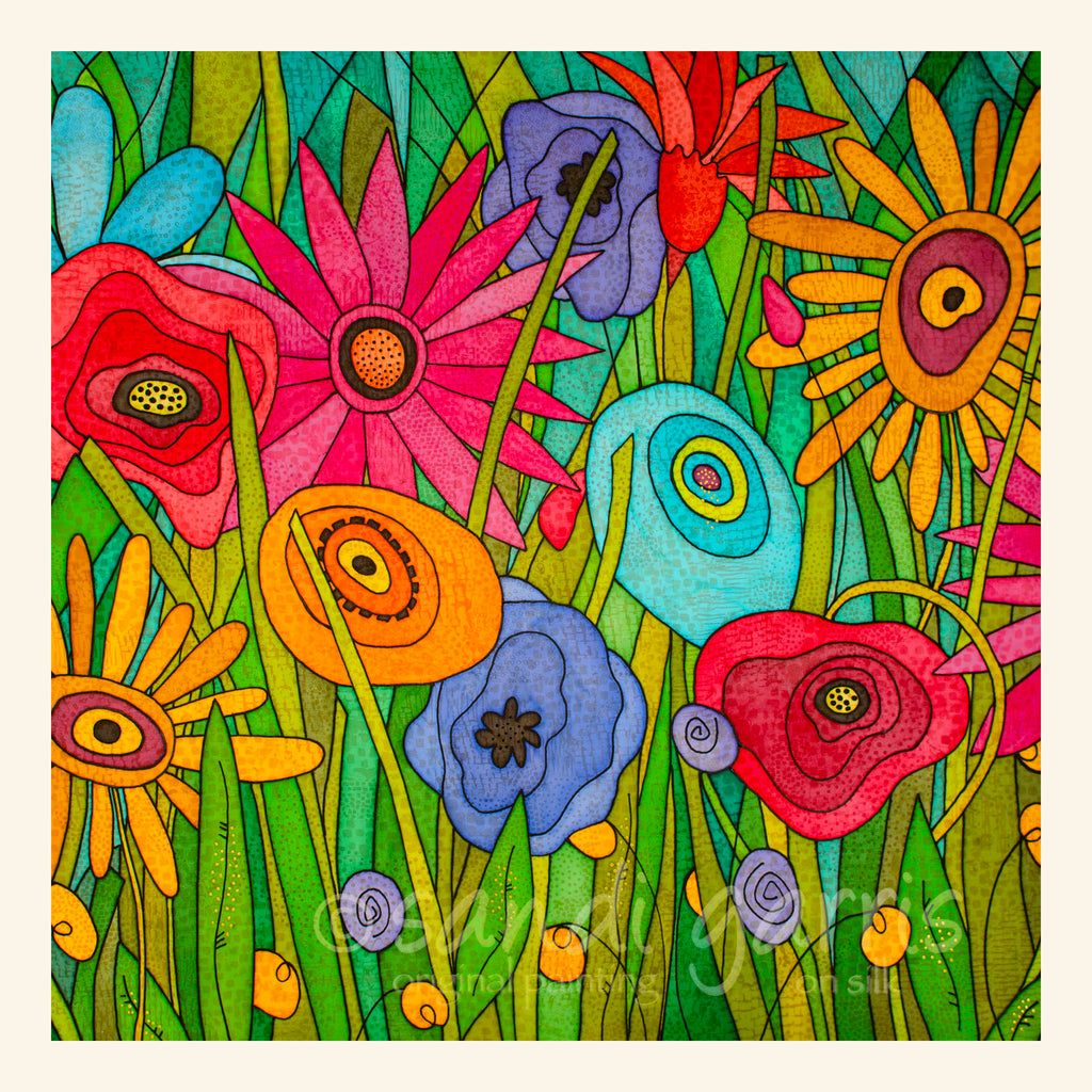 • Translucent acrylic on silk mounted over silkscreened visual textures.