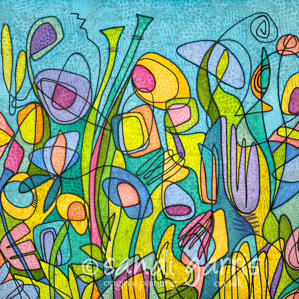 Translucent acrylic on silk mounted over silkscreened visual textures.