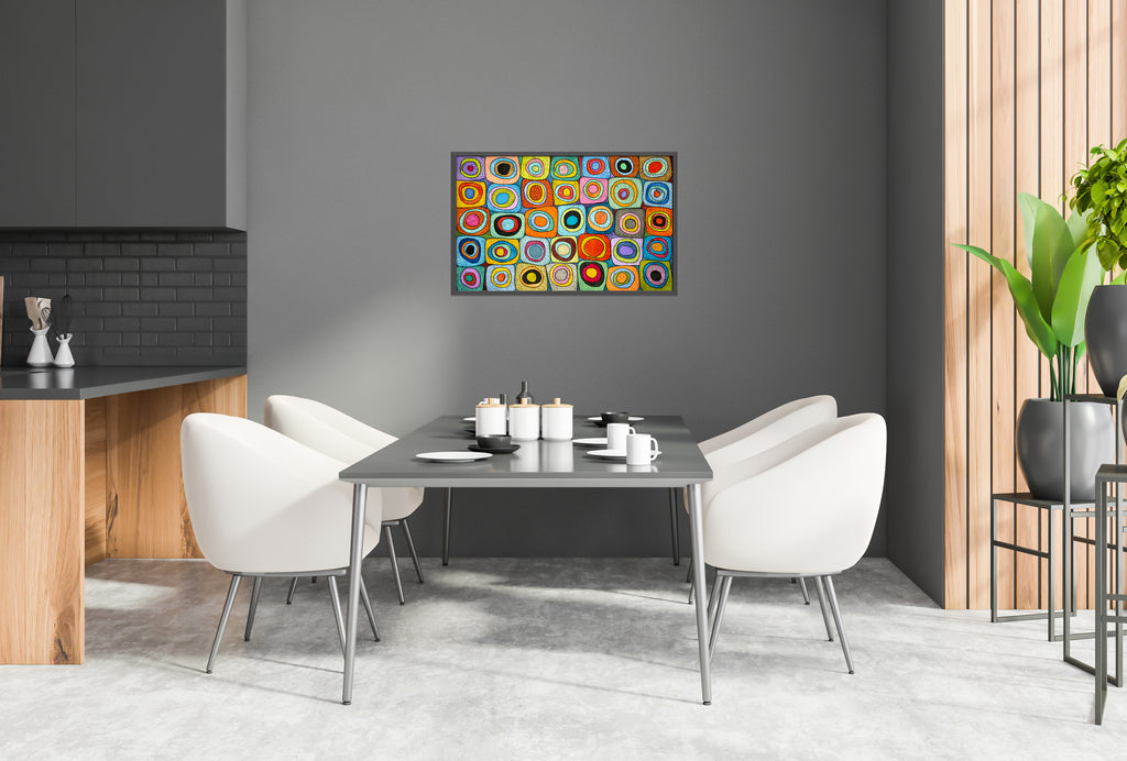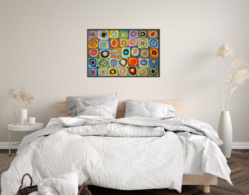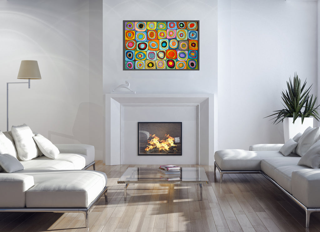 • Translucent acrylic on silk mounted over silkscreened visual textures.